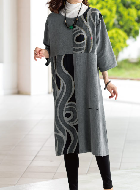- クロス切替え墨染めワンピース(ネックレス付き)