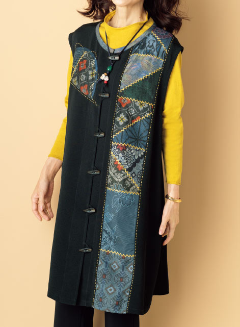 - 大島紬使いベスト(おかめひょっとこネックレス付き)