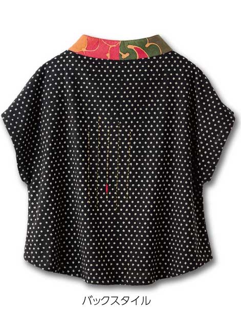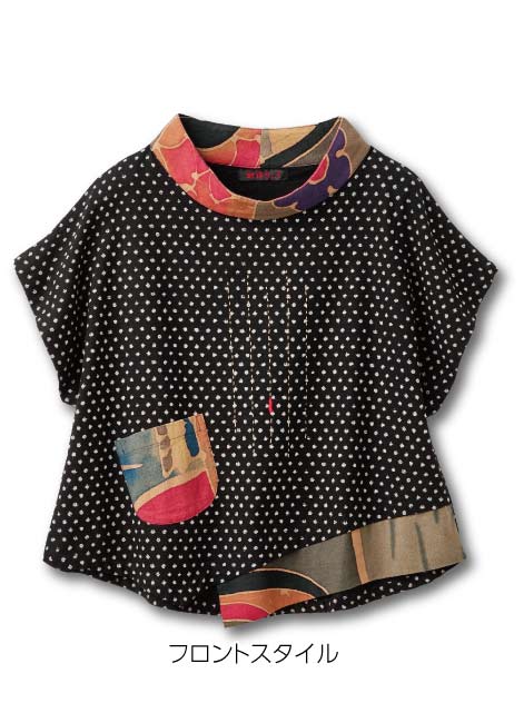 ホーム > かすり柄風アシンメトリートップス(和柄ブローチ付き)