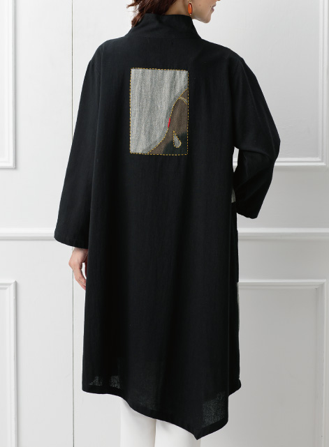 ホーム > ツートン裾アシンメトリー裏付きコート(大島紬ブローチ付き)