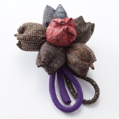 さまざまな大島紬で作ったブローチ付き。